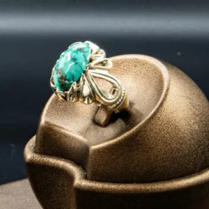 انگشتر فیروزه نیشابور رکاب دست ساز اره کاری کد MR-4