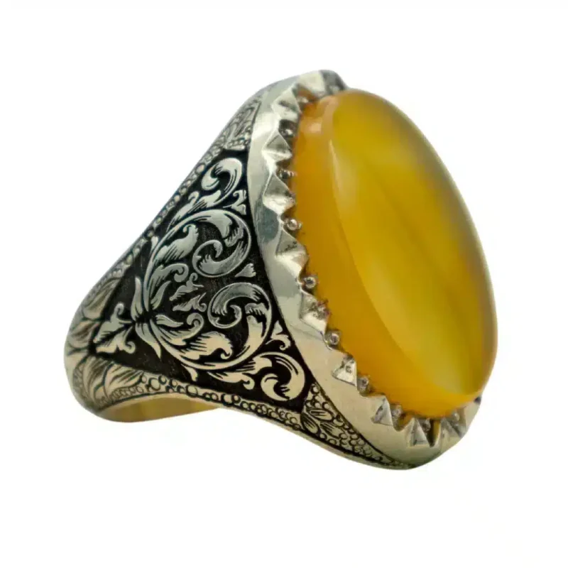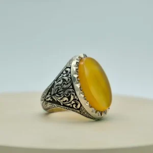 انگشتر مردانه با سنگ عقیق زرد یمن/دست ساز کد MR-15