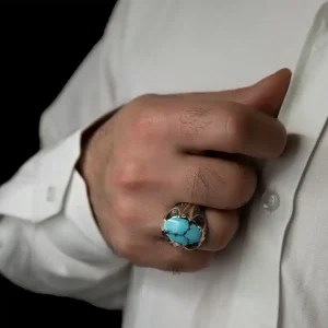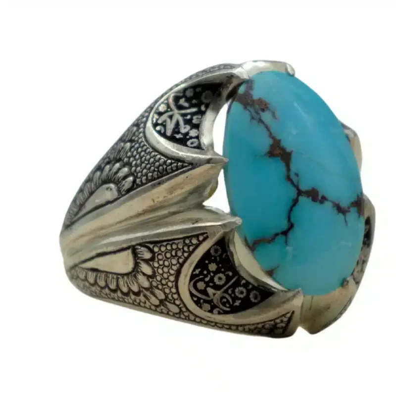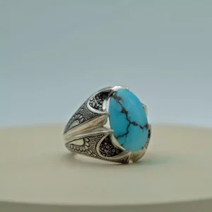 انگشتر مردانه با سنگ فیروزه نیشابور/دست ساز کد MR-12