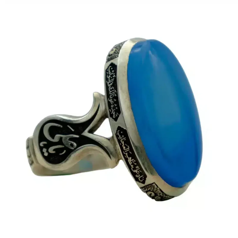 انگشتر مردانه عقیق آبی یمن /دست ساز کد MR-8
