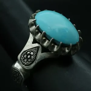 انگشتر مردانه قلمزنى نقره فیروزه نیشابور کد MR-6