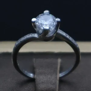 حلقه سولیتر تک نگین با آبکاری طلا سفید مناسب برای استفاده روزانه و در مناسبت های مختلف است و میتواند با تمامی زیورآلات نقره ی دیگر هماهنگ شود.