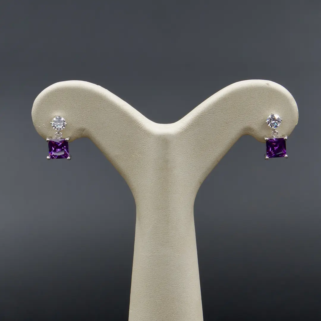 گوشواره نگین دار نقره زنانه – طرح مربع | کد WE-39