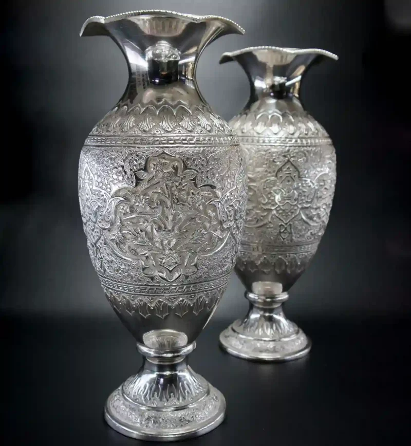 گلدانهای نقره میتوانند زیبایی و شکوه به فضاها بیافزایند و به عنوان قطعات تزئینی جذاب و شیک در دکوراسیون داخلی مورد استفاده قرار گیرند. انواع مختلفی از گلدانهای نقره با طراحیها و حکاکیهای متنوعی وجود دارند که به تناسب سلیقه و سبک شما، میتوانید گلدان مناسبی را انتخاب کنید.