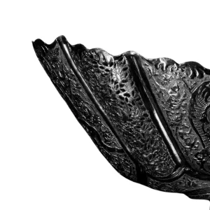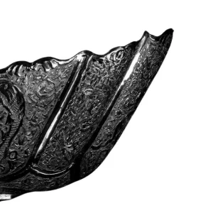 طرح قلم زده شده در این ظرف نقره زیبا طرح گل و مرغ است که در شمار طرح های اصیل ایرانی به حساب می آید. قلم کاری های ظریف و شکیل با سبک زیبای گل و مرغ اصفهان، مناسب برای پذیرای آجیل، استفاده در دکوراسیون و سرویس عروس نیز می باشد.