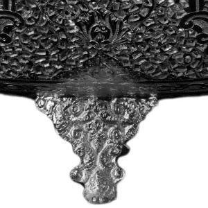 به این ظرف کشکول نیز گفته میشود. برای استفاده در دکوراسیون داخلی منزل، آجیل خوری و یا شکلات خوری یک انتخاب منحصر به فرد است. این ظرف به تمامی از نقره 84 عیار ساخته شده است وبا ظرافت و استادی تمام قلمزنی شده است.