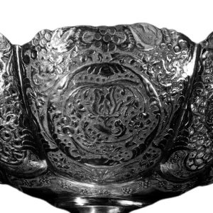 نقره به کار رفته در این ظرف زیبا ، نقره 84 عیار است. به جزیئات با دقت نگاه کنید به خصوص به دسته های ظرف که زیبایی ظرف را چندین برابر کرده است.