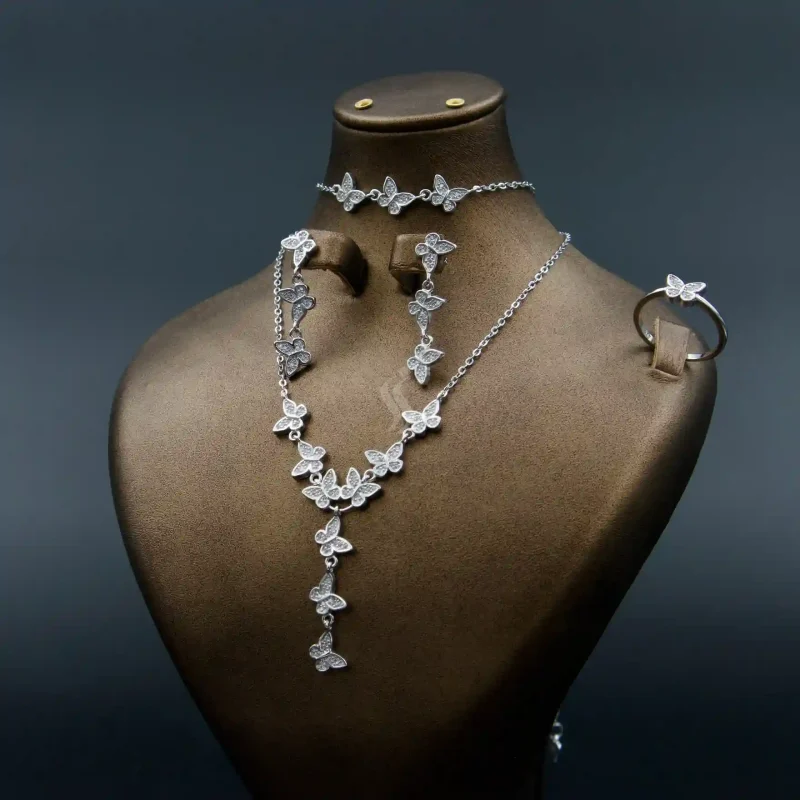 خرید سرویس تمام نقره مدل پروانه با آبکاری رودیوم گالری نقره موذنی بهترین گزینه برای افراد دارای حساسیت میباشد؛ زیرا آبکاری رودیوم علاوه بر جلوگیری از ایجاد حساسیت، قرمزی و التهاب پوست، جلوه و براقیت این سرویس نقره مجلسی را چندین برابر کرده و مانع از تغییر رنگ سرویس در استفاده طولانی مدت میشود و تا مدت ها مثل روز اول درخشان و چشم نواز میماند.