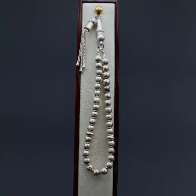 تعداد دانه های این تسبیح نقره 33 عدد می باشد، بدین صورت که از سه قسمت 11 عددی تشکیل شده و این 11 عدد را دو گوی کوچک از هم متمایز کرده است.