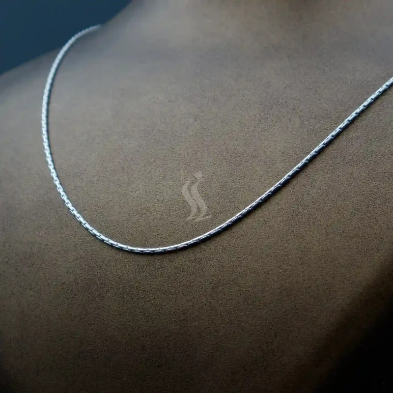 زنجیر نقره کد c02 بسیار شکیل و زیباست که در عین ظرافت ،جذابیت خیره کننده ای دارد.